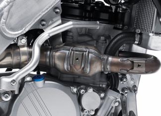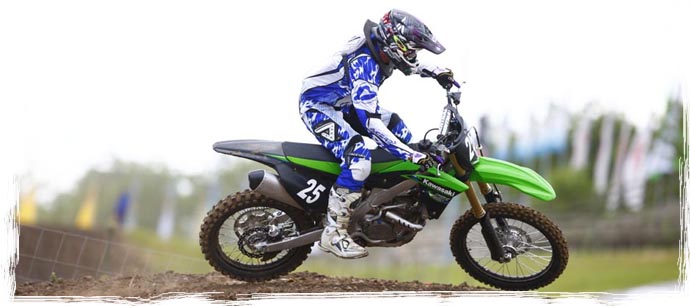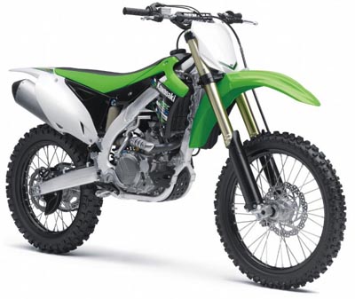 Die kleine 4-Takter von Kawa haben viele Crosser seit ihrer Markteinführung total lieb gewonnen. Lange schon bevor Villopoto in den USA damit durch die Stadien wütete. Die 250er Kawa war schon immer bekannt dafür einen kräftigen Murl und ein sehr agiles Handling zu haben. Die tolle grüne Optik dazu ... was will man mehr. Die neue kleine 2013er Kawa hat damit natürlich nicht mehr viel zu tun als mit dem Bike anno dazumal. Mittlerweile sind die Ansprüche selbst für Hobby-Crosser so gewachsen dass teilweise sogar schon Werksmaterial in solchen Bikes verbaut wird. Alles was beim Vorjahresmodell gut war bleibt natürlich auch weiterhin drin. Z.B. das duale Einspritz-System welches aus dem Supersport-Bike Bereich kommt. Da liefert die obere Einspritzdüse zusätzlich Explosionsstoff für den Murl wenn dies notwendig ist. Die Einspritzdüsen wurden gegenüber dem Vorjahresmodell auch vergrössert, es fliesst ca. 20% mehr Treibstoff in den Brennraum als bei der 450er zum Vergleich. Ein um 0,1 mm niedrigerer Zylinder sorgt für mehr Kompression als bei dem 2012er Modell.