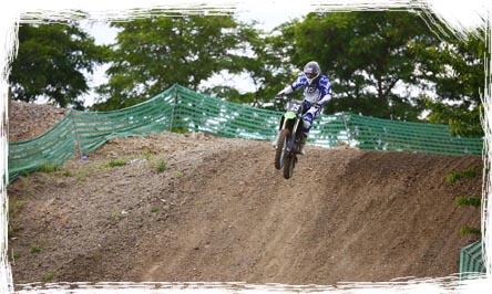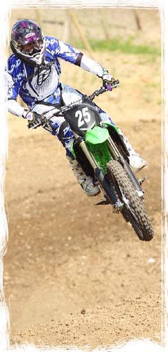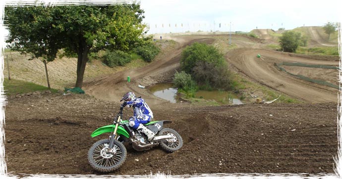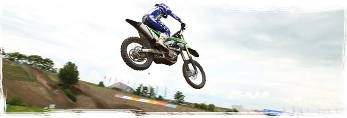 Im Gegensatz zur 250er kann man darauf verzichten zu den Tables hin Anlauf nehmen zu müssen, der Motor beschleunigt derart kräftig unten raus dass man auch mit einem kurzem Anlauf über jeden der 20m-Table's in Teutschenthal kommt. Mit der sanften Mapping-Einstellung ist die 450er aber sicher auch für jeden Hobby-Crosser leicht zu fahren und zieht einem nicht die Ärmel lang. Ich hätte mir nicht gedacht dass mir die 450er Kawa in Teutschenthal soviel Spass machen könnte. Auch optisch wurde die 450er wie auch die 250er verändert. Z.B. die Öl-Einfüllschraube ist jetzt blau eloxiert und der grausliche Gummi-Wuppel damit Vergangenheit, ebenfalls der bisher dunkelgraue Kupplungsdeckel der sich immer sofort abwetzte wurde durch einen neu gerillten hellen Deckel ersetzt. Die Vorderbremse der 450er